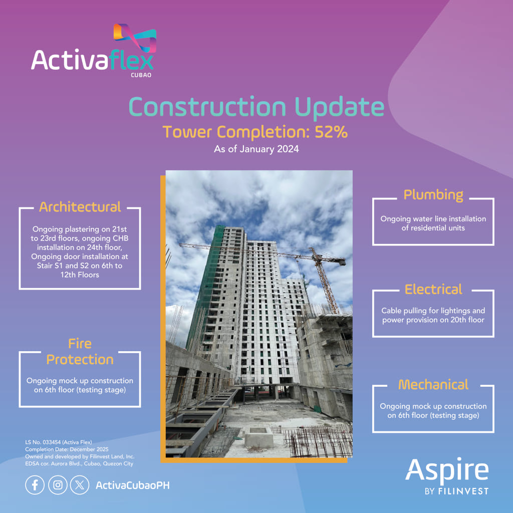 Pre-selling units ~ Construction Update: 52% as of January 2024