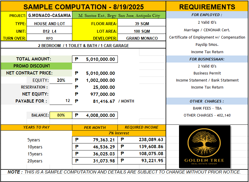 Blk 13 Lot 4 (End) - Lot: 100sqm / Floor: 39sqm - 5,010,000
