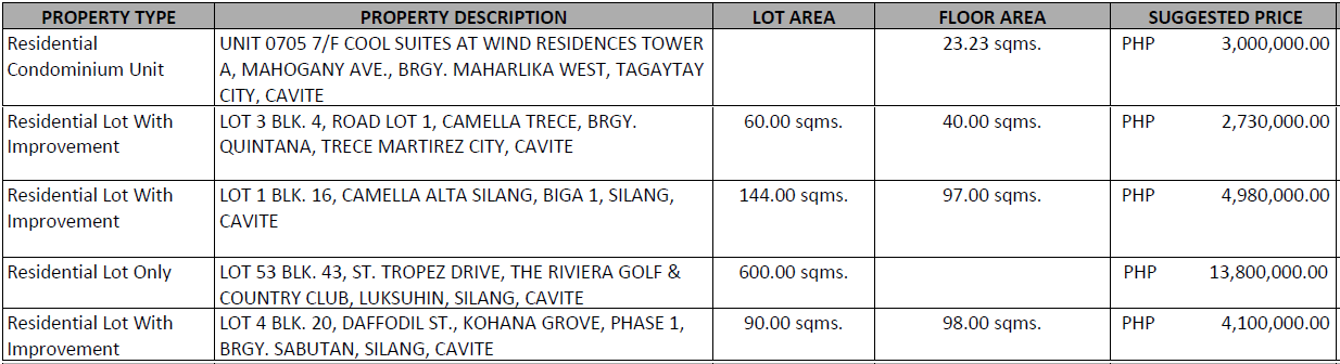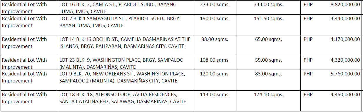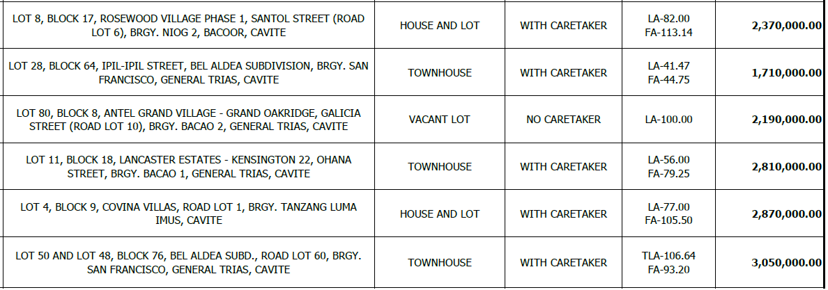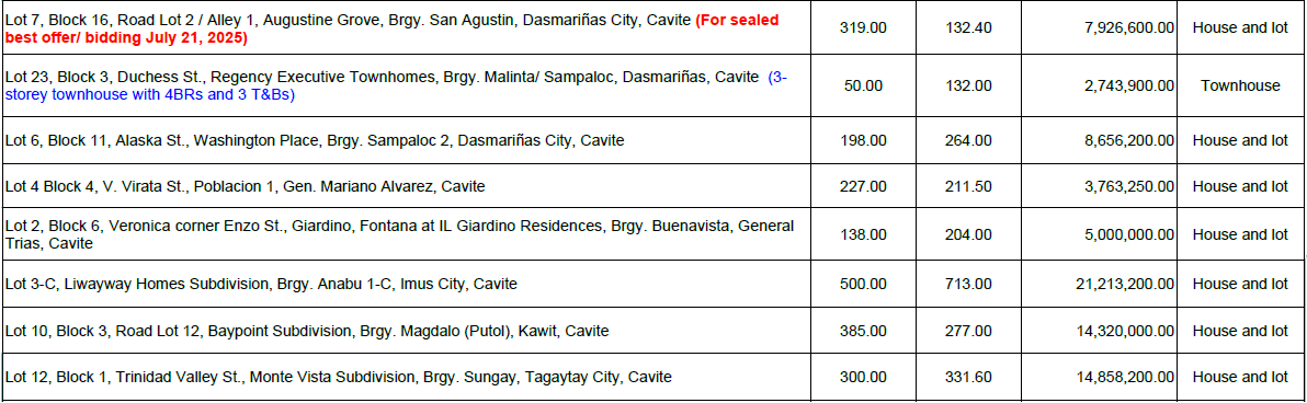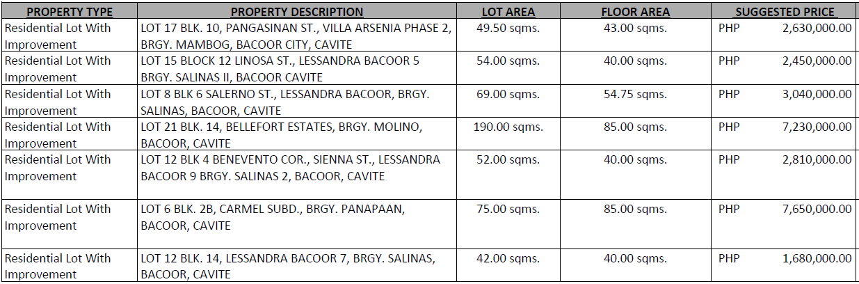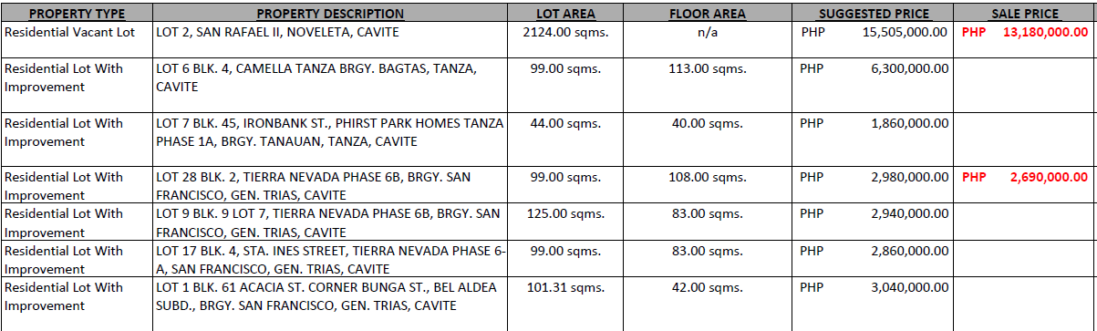FORECLOSED PROPERTIES