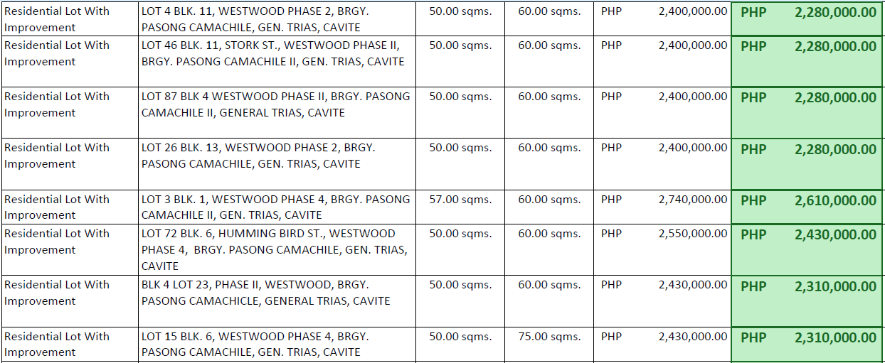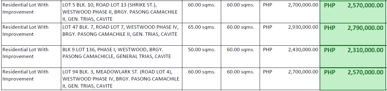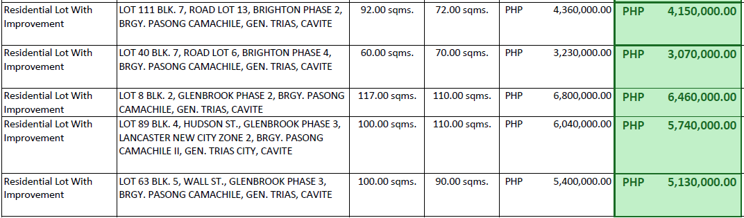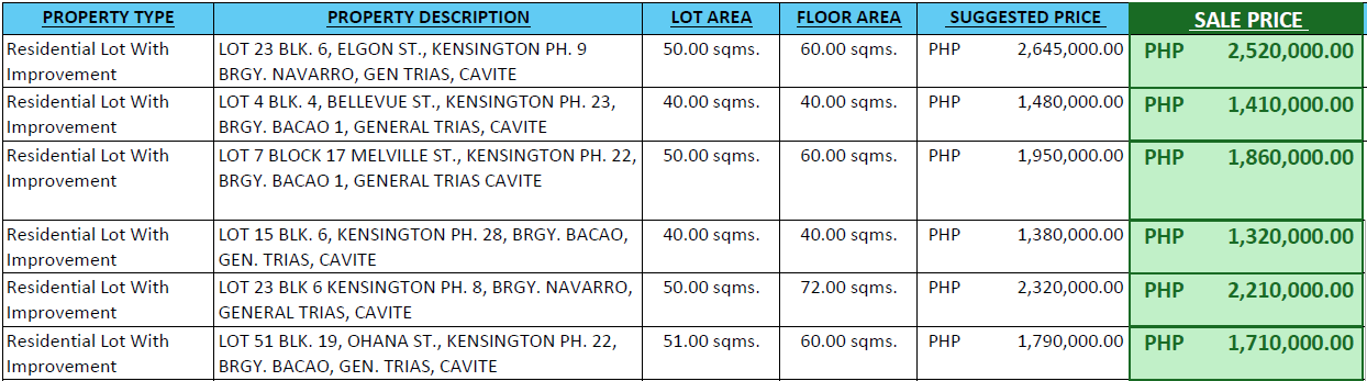 NOTE : All inventories are subject to change especially the availability and prices.