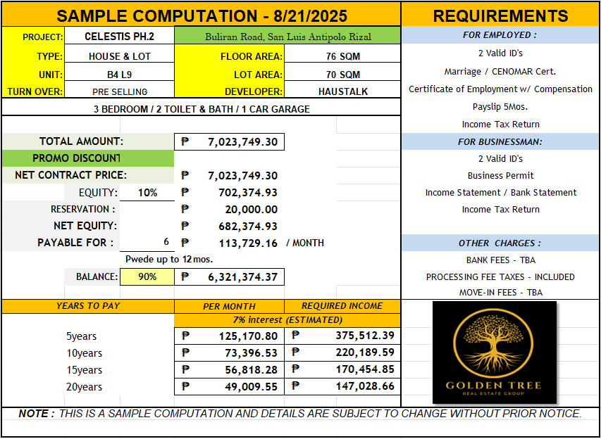 - Lot Area: 70 to 96 sqm