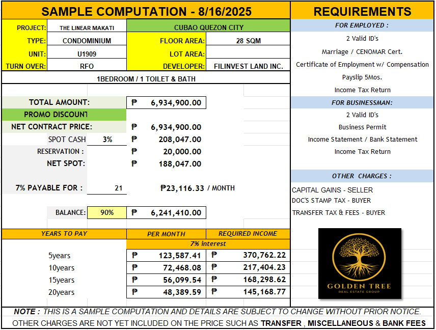 1Bedroom - 28sqm to 34sqm - 6M to 6.3M