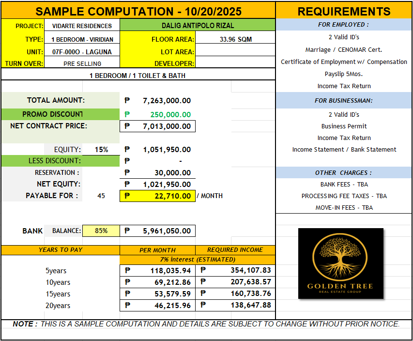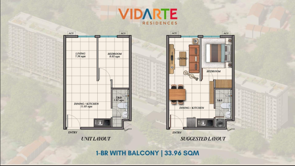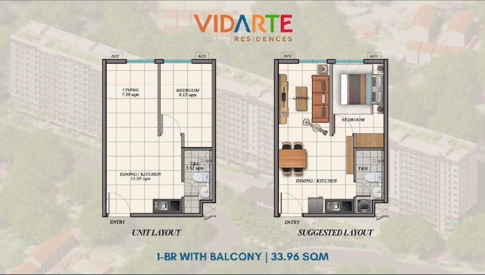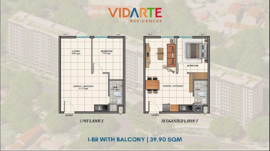 - 1Bedroom (33.96sqm to 39 sqm)