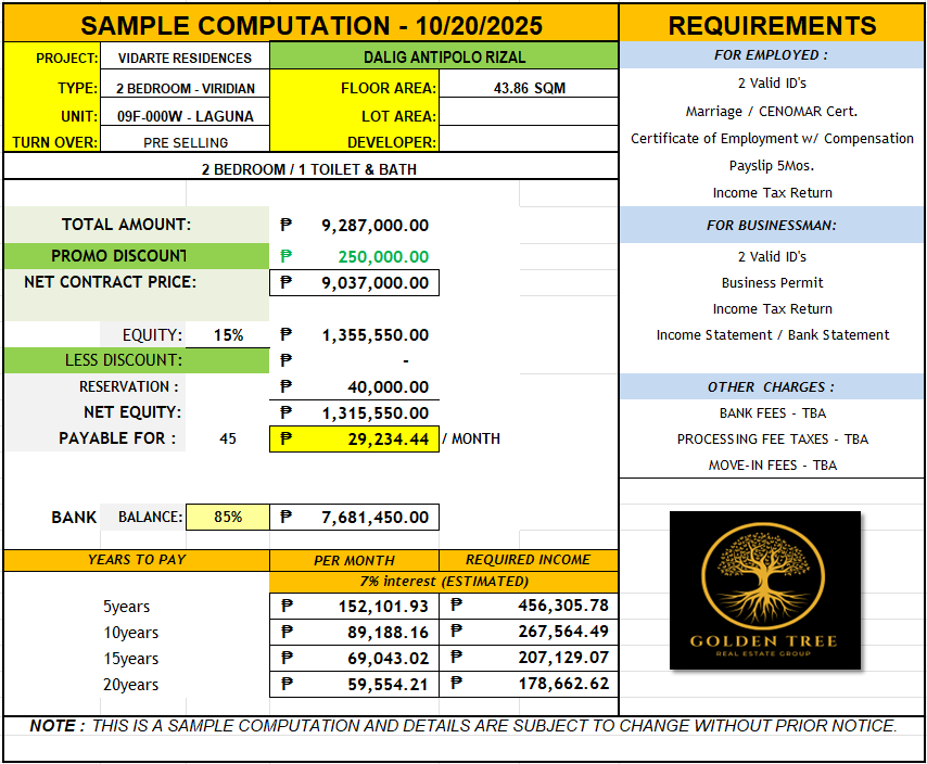 - 2Bedroom (43sqm to 51.88 sqm)